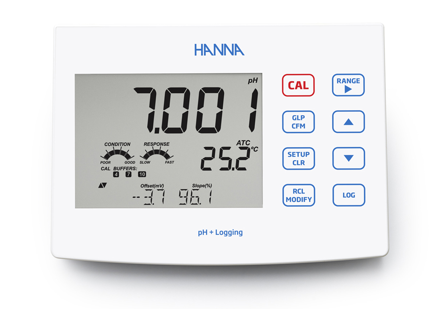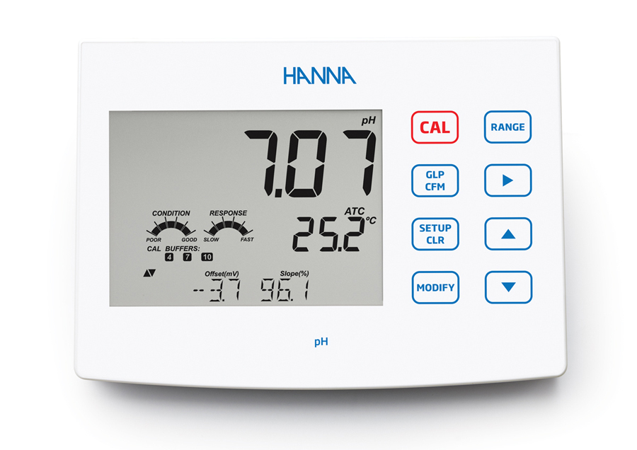 Option 2: Our pH/ORP Benchtop Meter (HI2621) with two operation modes (standard and basic) and the ability to log, store, and transfer GLP data