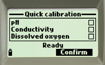The quick calibration feature allows for a single point calibration for pH, conductivity, and dissolved oxygen all in few simple steps.